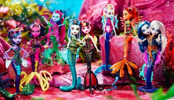 За подіями серії Монстр Хай Кошмарний Риф, компанія Маттел випускає чудову серію ляльок monster high reef. Колекція складається з 8 ляльок monster high pack, виконаних в образі підводних мешканок.